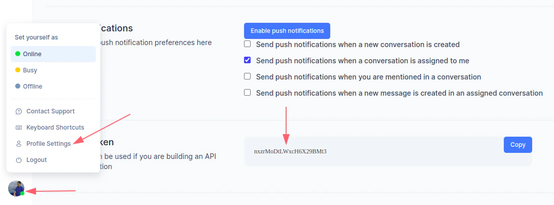 Get your Chatwoot Access token: