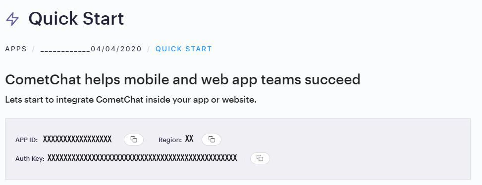 2. You will find APP_ID, AUTH_KEY and REGION key at the top in QuickStart section or else go to “API & Auth Keys” section and copy the APP_ID, API_KEY and REGION key from the “Auth Only API Key” tab.