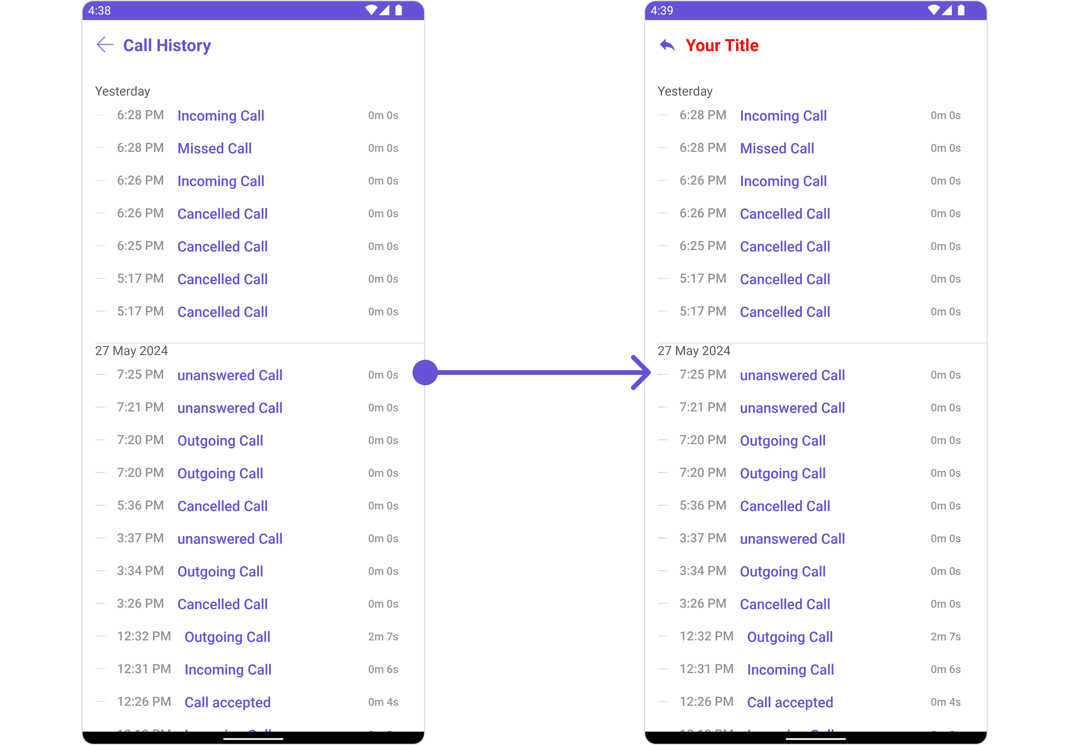 You can customize the appearance of theCallLogHistoryStyle Component by applying the CallLogHistoryStyle to it using the following code snippet.