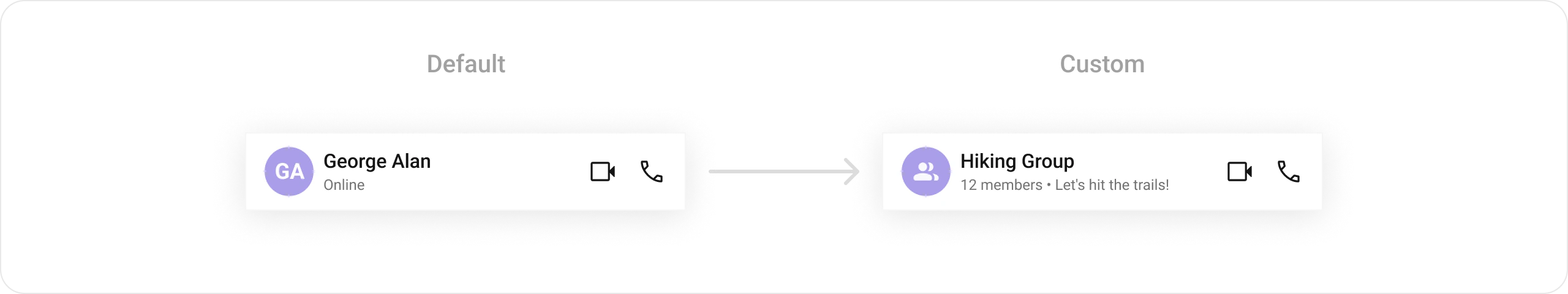 ListItem WidgetThis component’s widget consists of avatar, status indicator , title, and subtitle. The fields are then mapped with the SDK’s user, group class.