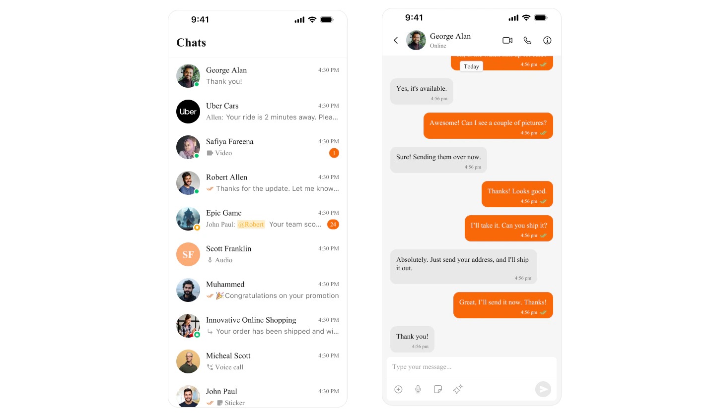 Default Colors CometChatTheme includes predefined color sets for Light and Dark modes. These color sets ensure proper visual contrast, accessibility, and consistent branding. With CometChatTheme, the predefined colors are automatically applied based on the system’s appearance. You can access and use these default colors directly through the CometChatTheme class. Example: Light Mode Color Usage- Swift