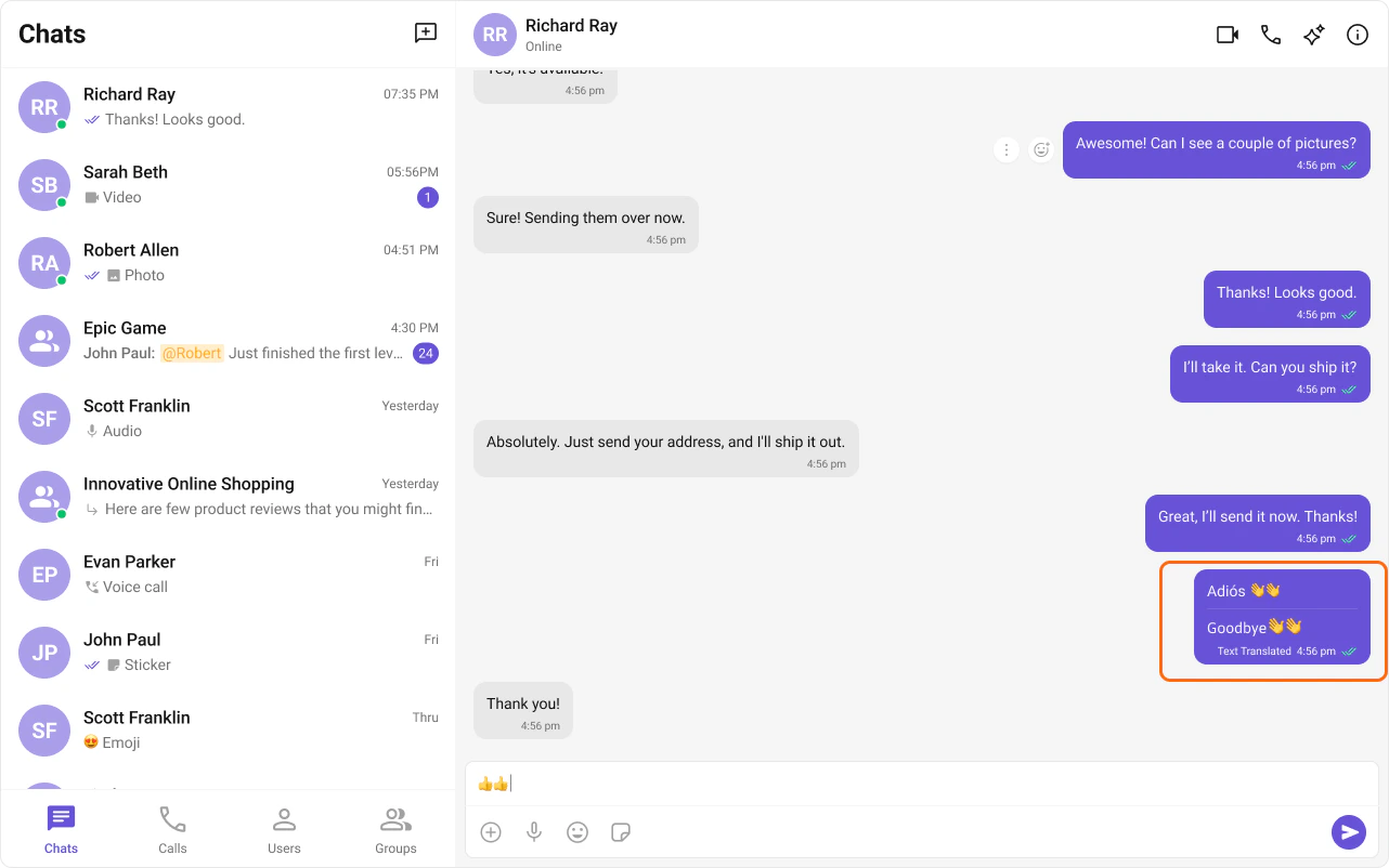 Creates smaller preview images for shared images, reducing bandwidth. See Thumbnail Generation Extension. Auto-integrates into the Message Bubble of MessageList when activated.