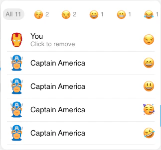 reactionItemClickedfunctionA function that handles the click event on the reaction list items. It can be used to remove a reaction.